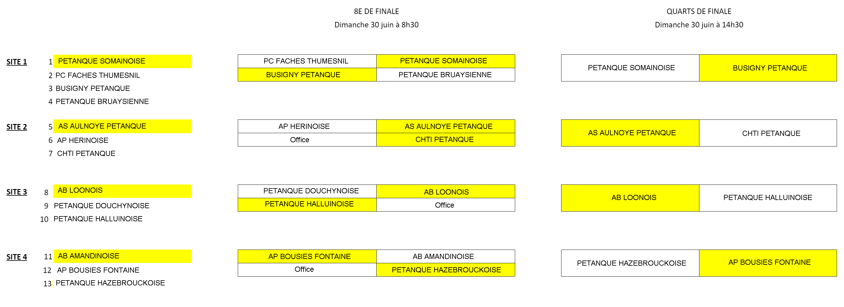 La Phase Finale de la Coupe du Comité regroupe les clubs de : Busigny Pétanque, l'AS Aulnoye Pétanque, l'AB Loonois et l'AP Bousies Fontaine.