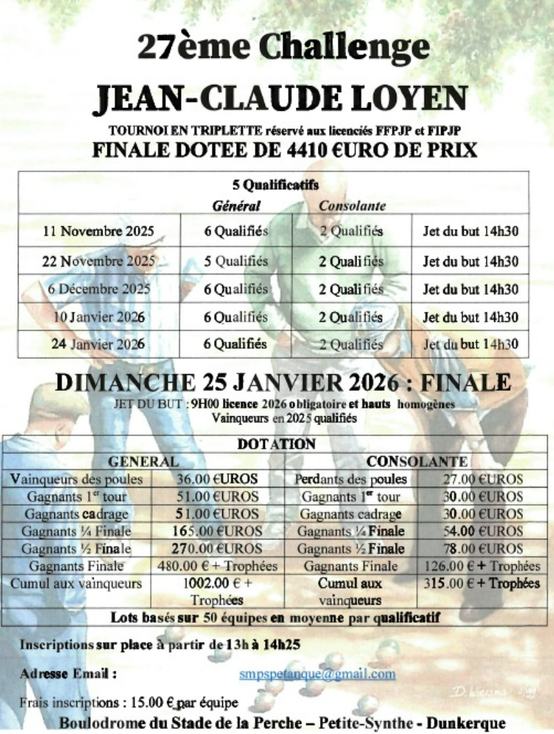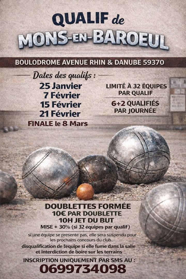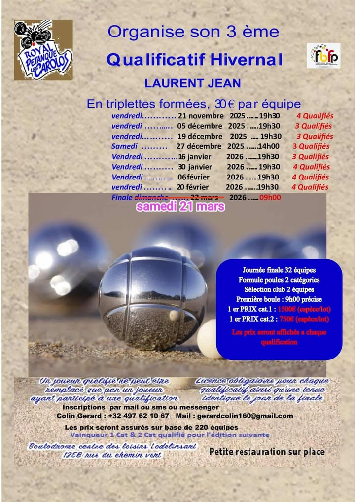 | PET. AMANDINOISE | 18 janvier | 09h00 | FINALE | X2 Départ. | 64 équipes qualifiées | ||